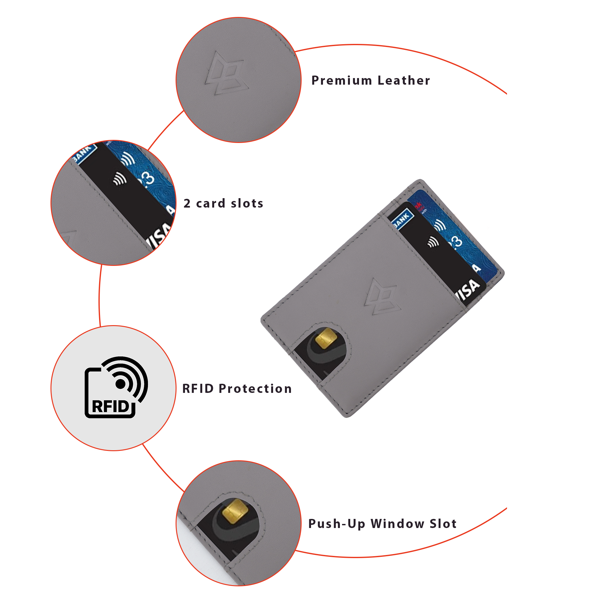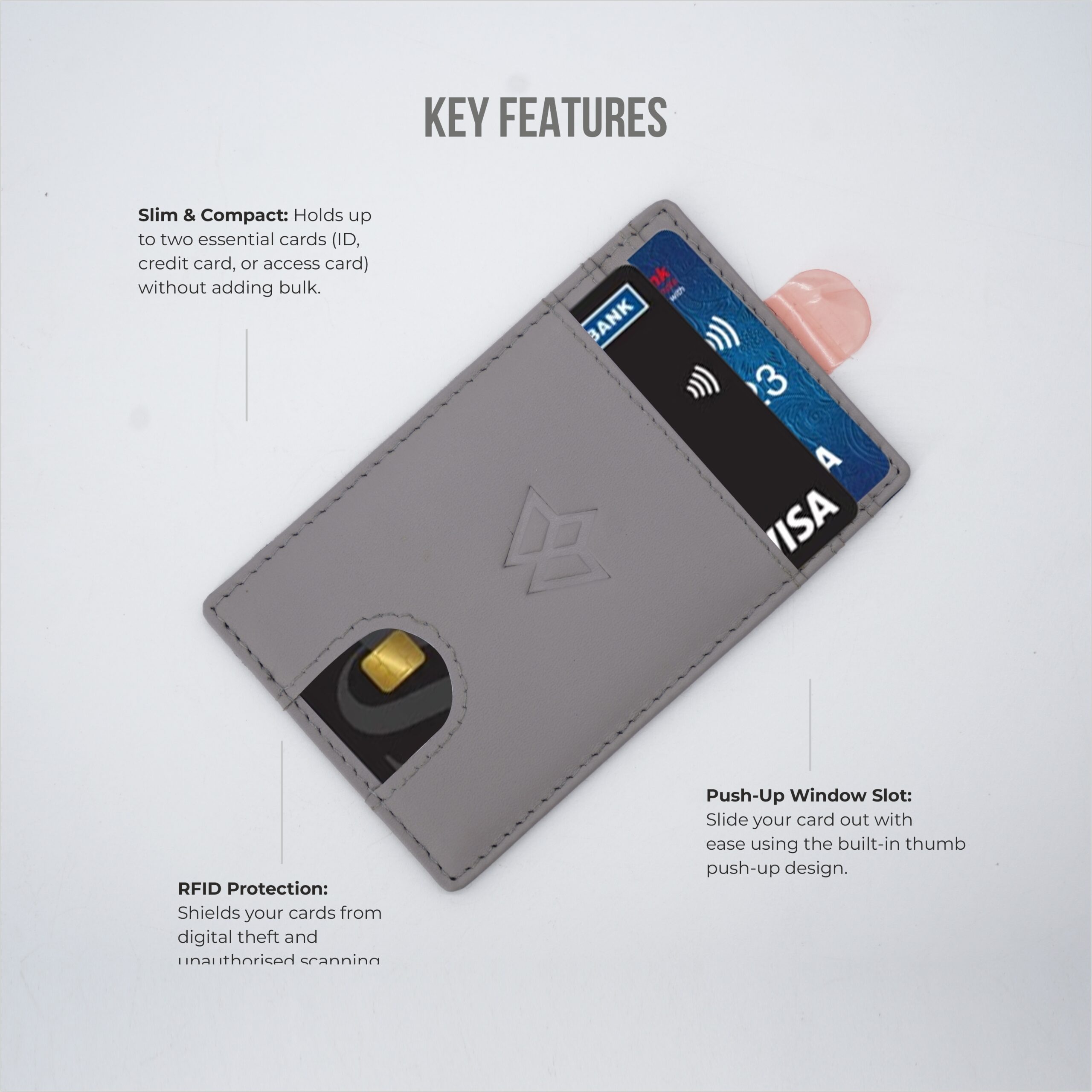 Sleek, functional, and handcrafted from premium full-grain leather, the Wasama Stick-On Phone Card Holder in Ashen Mist adds convenience and sophistication to your everyday carry. Designed to fit discreetly on the back of your phone or phone case, this compact wallet easily carries two essential cards, such as a credit card and ID. The thumb push-up slot provides quick and hassle-free access, while the integrated RFID-blocking lining adds an extra layer of digital security.