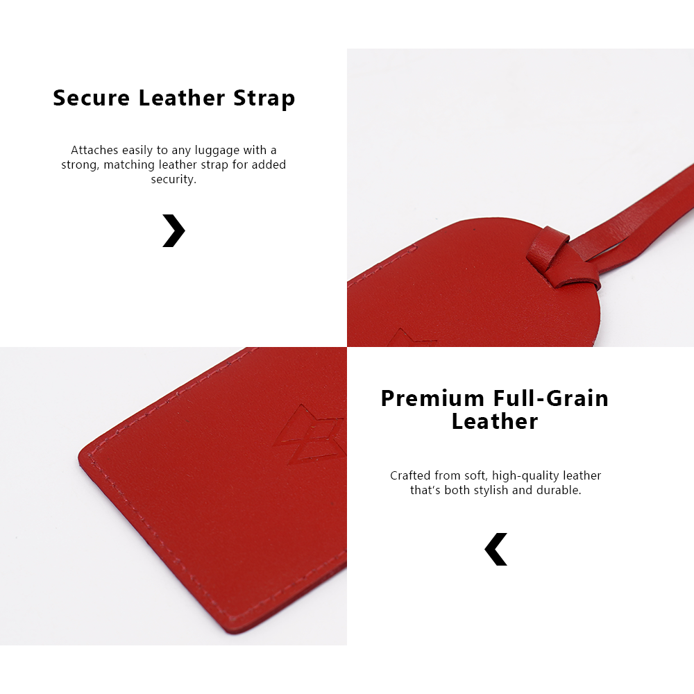 Elevate your travel game with the Wasama Genuine Leather Luggage Tag in Crimson Flame. Handcrafted from rich full-grain leather, this tag is not only durable but also sophisticated. The secure leather strap ensures it stays attached to your bag through every airport dash and road trip. Its privacy flap conceals your personal information while allowing your name to be visible, and the RFID protection adds an extra layer of security.