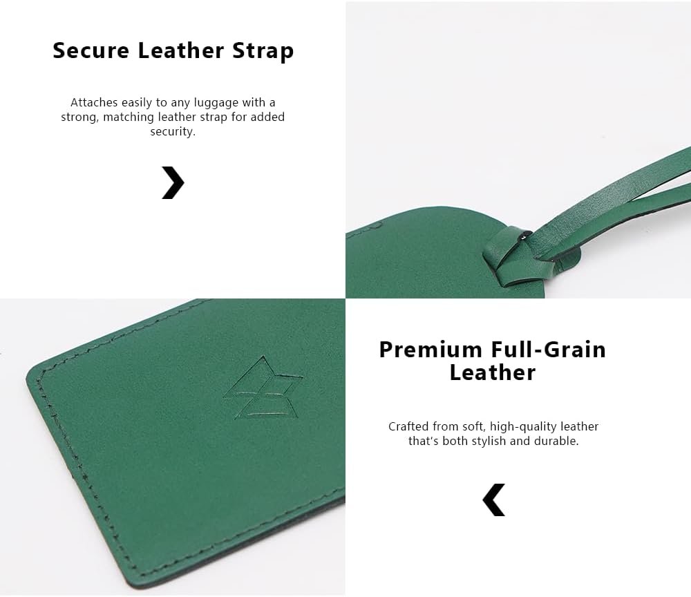 • Perfect Dimensions for Any Bag: Our leather luggage tags for suitcases are designed to easily attach to any bag. Whether it’s a suitcase name tag or bag tag for luggage, the compact size of our luggage label ensures versatility and ease of use.