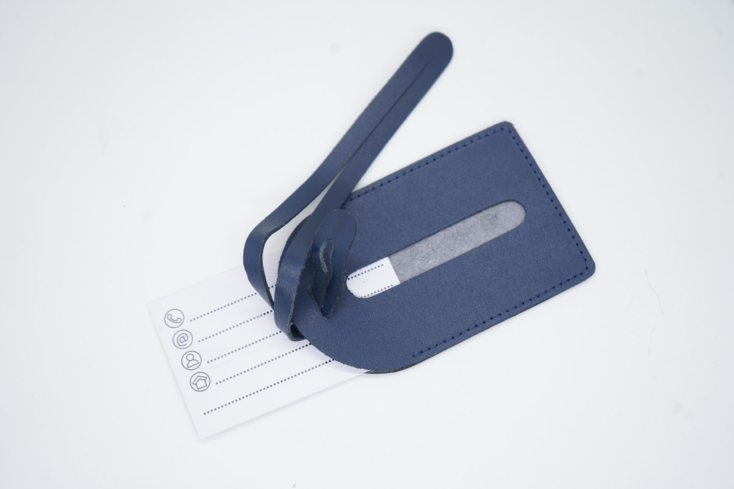 Elevate your travel game with the Wasama Genuine Leather Luggage Tag in Indigo Eclipse. Handcrafted from rich full-grain leather, this tag is not only durable but also sophisticated. The secure leather strap ensures it stays attached to your bag through every airport dash and road trip. Its privacy flap conceals your personal information while allowing your name to be visible, and the RFID protection adds an extra layer of security.