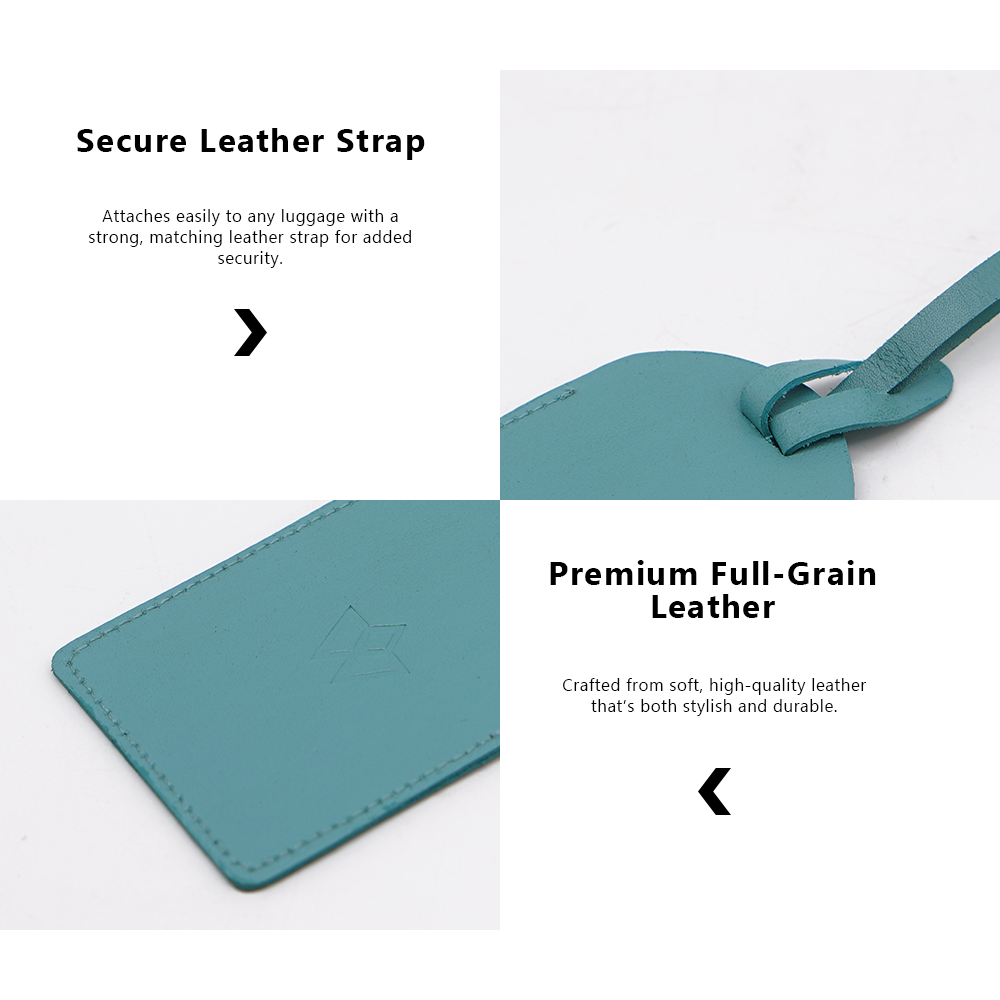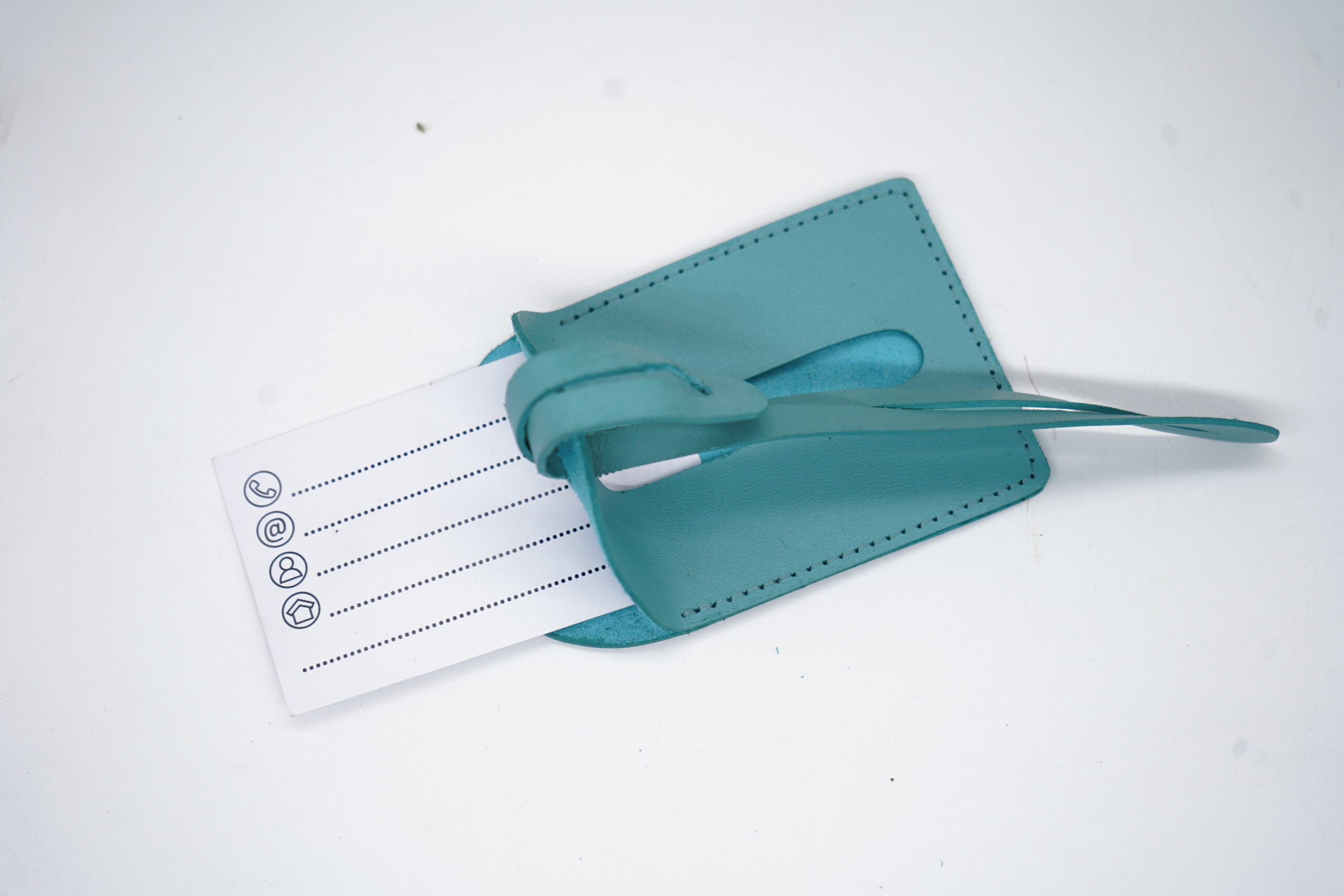 Elevate your travel game with the Wasama Genuine Leather Luggage Tag in Ocean Whisper. Handcrafted from rich full-grain leather, this tag is not only durable but also sophisticated. The secure leather strap ensures it stays attached to your bag through every airport dash and road trip. Its privacy flap conceals your personal information while allowing your name to be visible, and the RFID protection adds an extra layer of security.