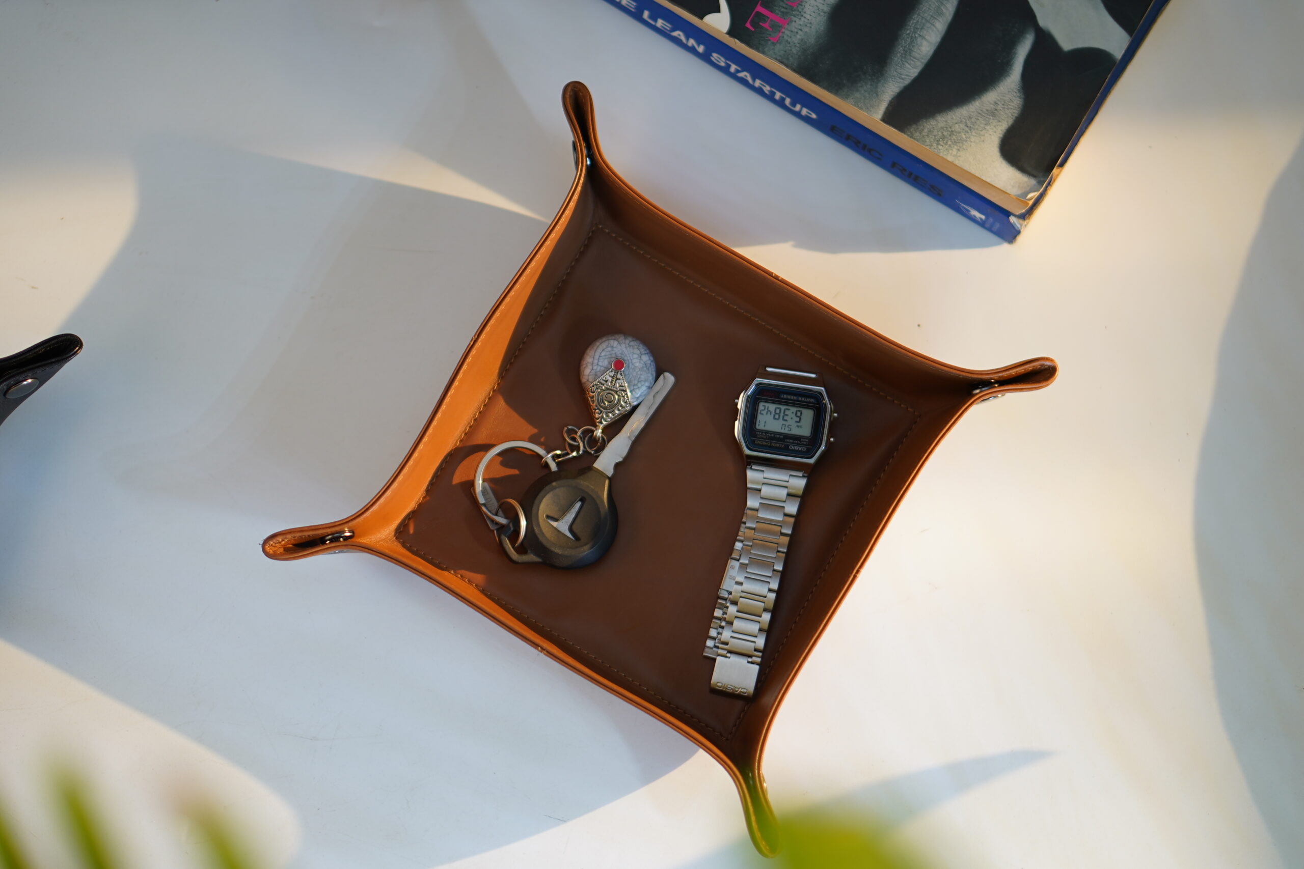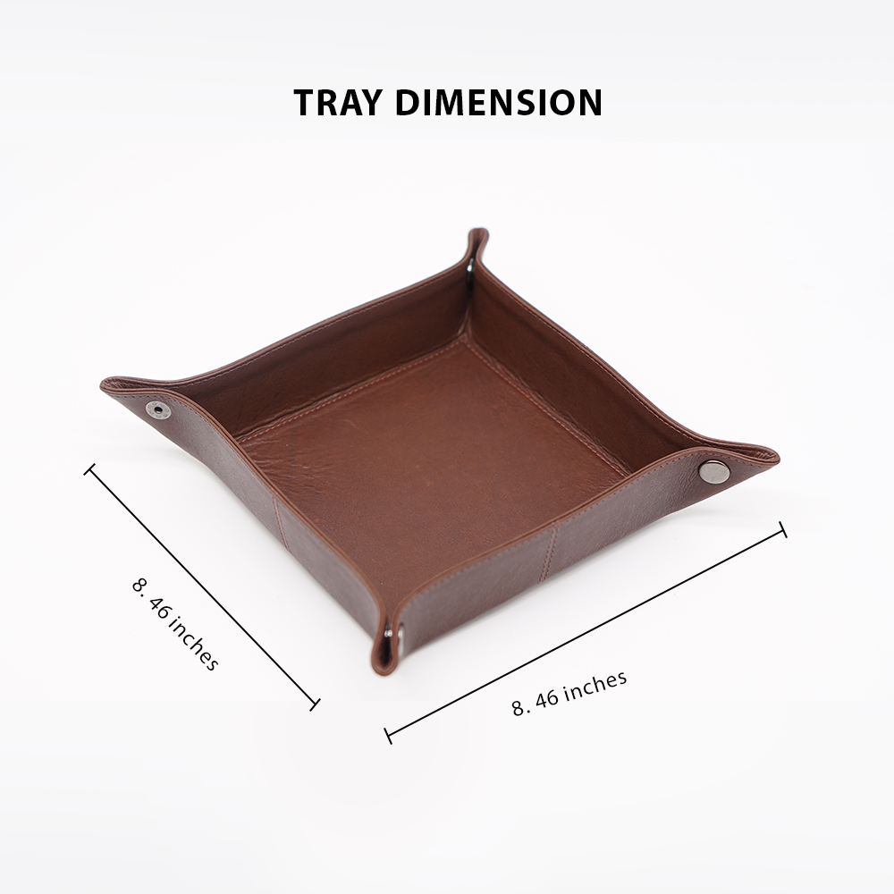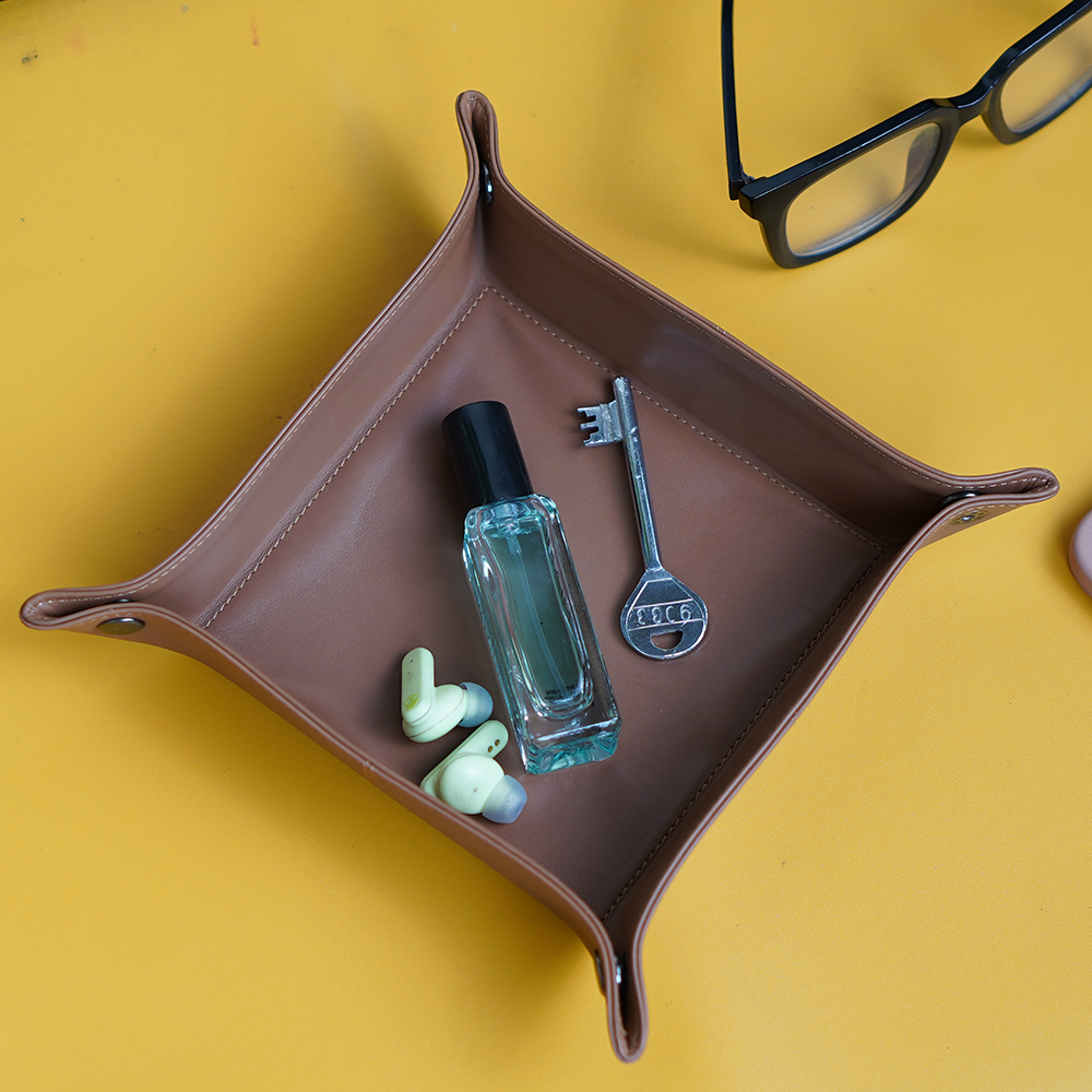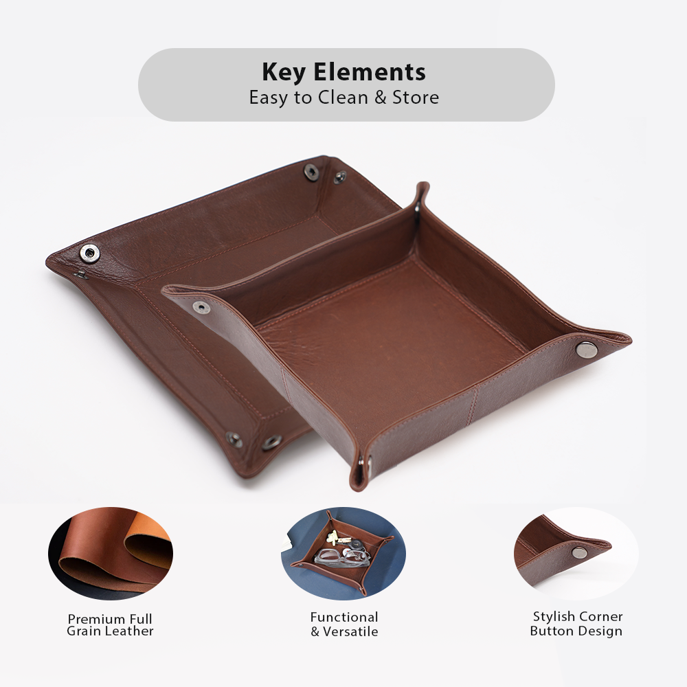 The tray features a clever snap-button corner design, allowing you to quickly assemble or flatten it, depending on your needs. Whether placed on your entryway console, bedroom nightstand, or office desk, it brings a refined, purposeful aesthetic to any space. Keep your essentials, such as keys, wallet, watch, coins, or rings, neatly stored and always within reach.