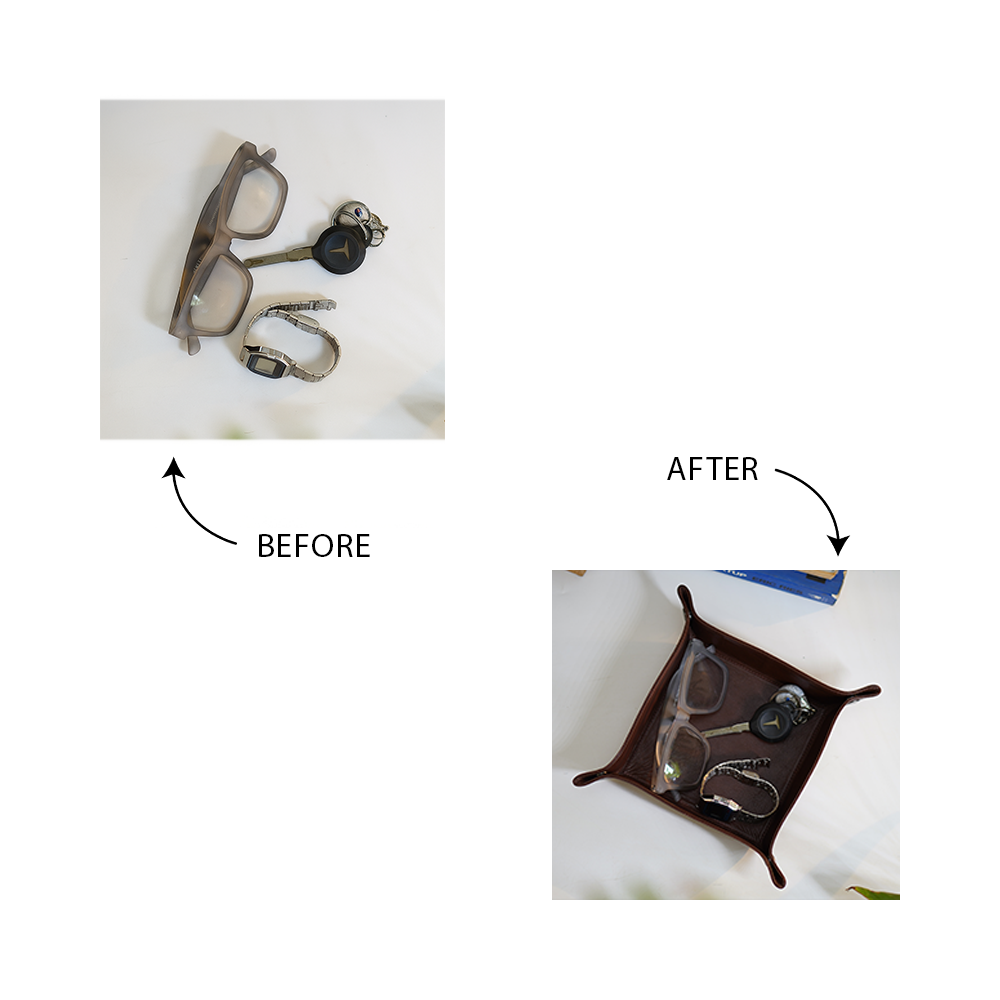 • Organised Elegance: Perfect for storing daily essentials like keys, wallets, watches, coins, or jewellery, all in one convenient spot.