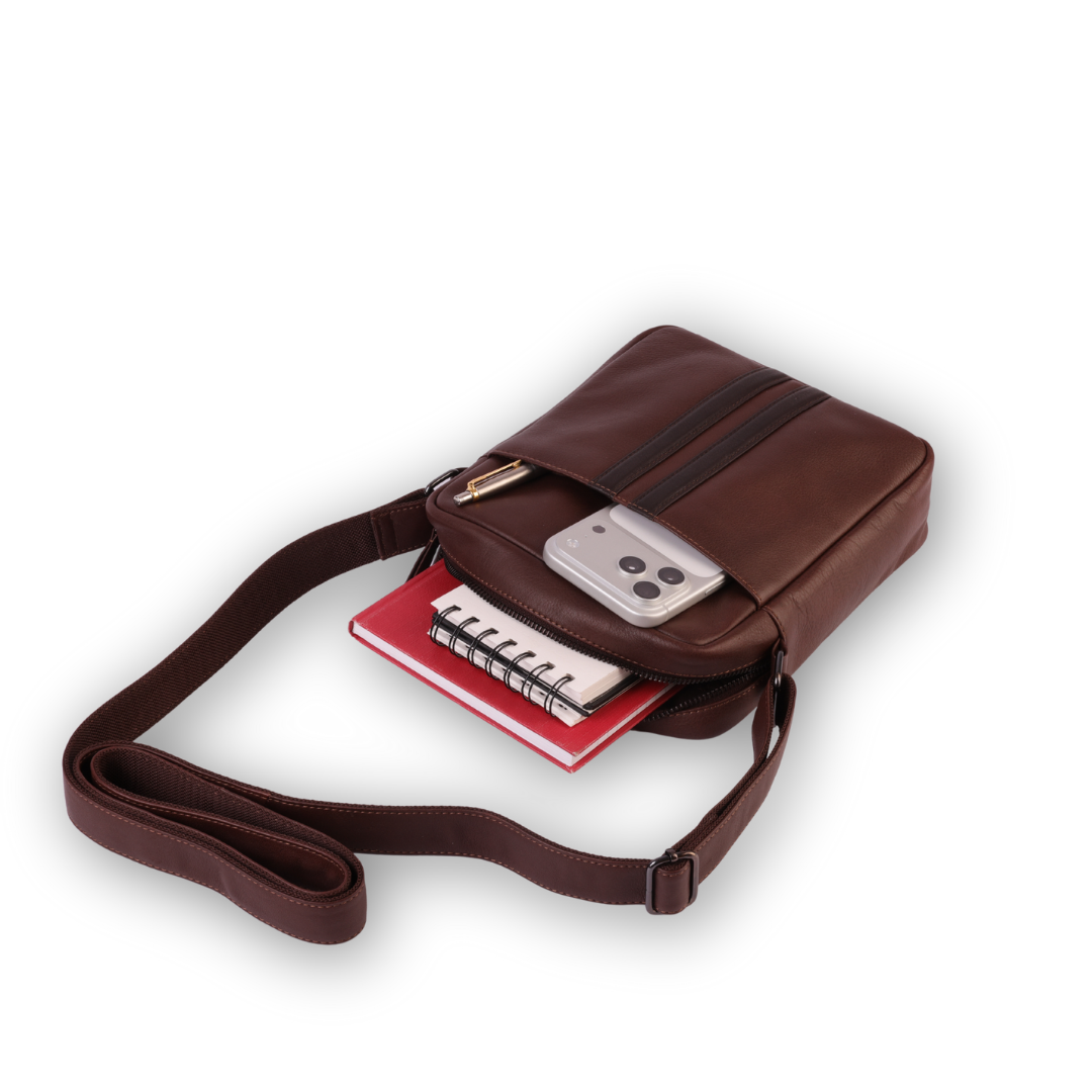 Introducing the Wasama Genuine Leather Messenger Bag, the ultimate blend of style, practicality, and timeless sophistication for the modern man. Designed as a versatile crossbody companion, this men’s leather shoulder bag is compact yet spacious, making it the perfect choice for everyday use, work, or travel. Handcrafted from premium genuine leather, it combines lasting durability with an elegant design that elevates any outfit. The Wasama Messenger Bag is thoughtfully crafted for men who value both style and function. With three secure zippered compartments, it offers ample space for essentials such as travel documents, gadgets, and daily necessities. Its clever size makes it ideal for use as a travel document bag or even an iPad bag for men, ensuring your belongings are always organised and within easy reach. Featuring an adjustable leather strap, the bag can be worn comfortably as a crossbody or sling bag, adapting to your lifestyle with ease. Whether you’re heading to the office, exploring the city, or embarking on a journey, this messenger bag delivers convenience without compromising on elegance. More than just a practical accessory, this leather satchel is a statement of sophistication. The superior craftsmanship and classic design ensure it will remain a reliable companion for years to come, making it a worthy investment in both style and durability. Choose the Wasama Genuine Leather Messenger Bag and experience a modern essential that balances elegance with everyday utility.
